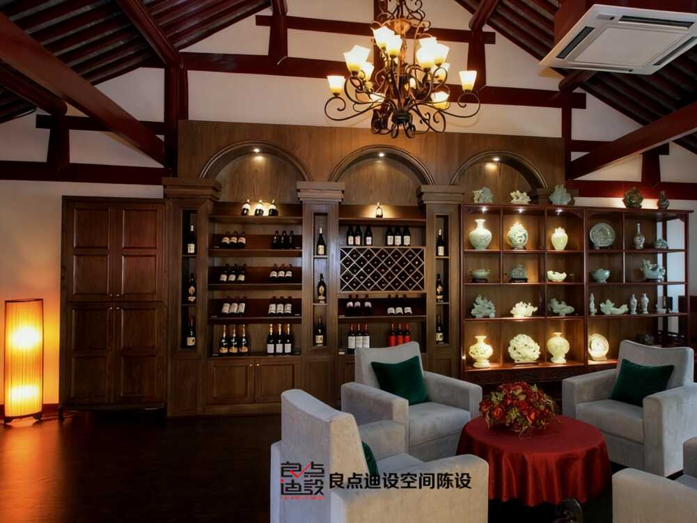 瞅瞅這張大紅沙發(fā)!絲絨質(zhì)感絕了,金色鑲邊提升精致度。對(duì)面酒柜設(shè)計(jì)太巧妙,傳統(tǒng)茶室居然和現(xiàn)代酒吧元素混搭成功。玻璃柜門透出收藏好酒,聚會(huì)氛圍直接拉滿。