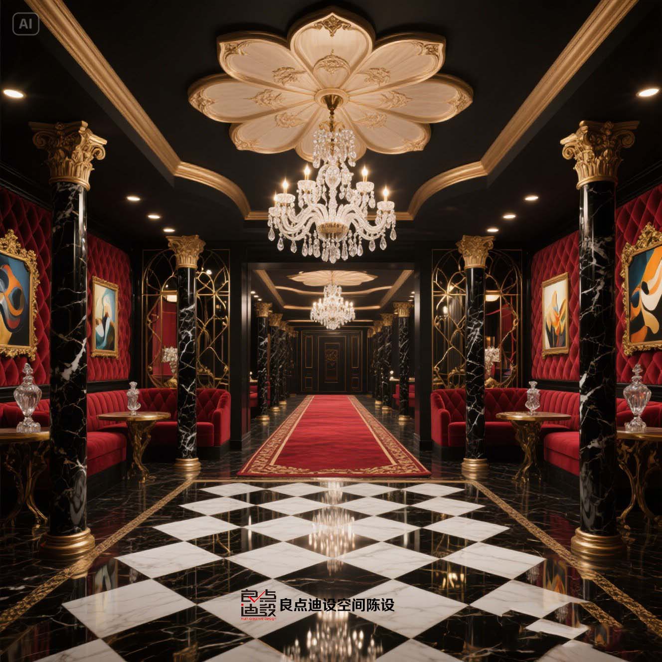 酒吧軟裝教科書!黑金穹頂+紅絲絨沙發(fā)裝修軟裝設(shè)計(jì)直接封神