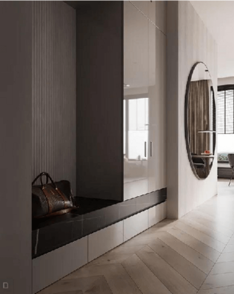 玄關處的裝修要集美觀度與實用度為一體,鞋柜做到頂設計,***大程度地滿足鞋子收納需求,鞋柜底部留空,方便日常換鞋取鞋,玄關處采光度較弱,在鞋柜底部和留空處設計好燈帶,增加玄關處的采光照明。